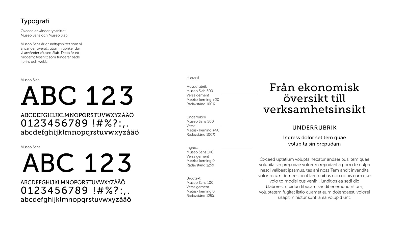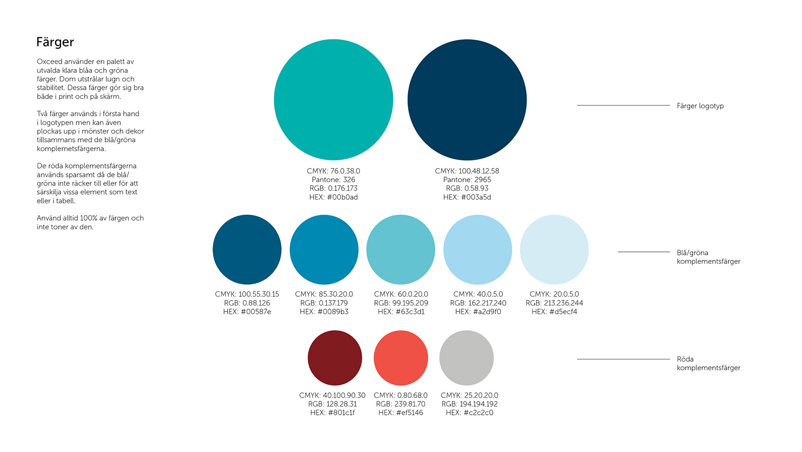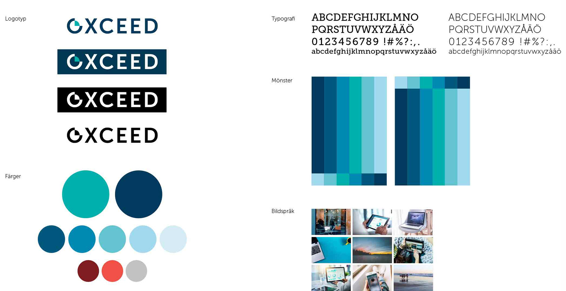 Logotyp, grafiska guidelines & varumärkesplattform för den digitala tjänsten Oxceed. En tjänst som gör uppföljning, budgetering och benchmarking i molnet. I samarbete med reklambyrån Any Given Monday och copywriter Åsa Österlund.